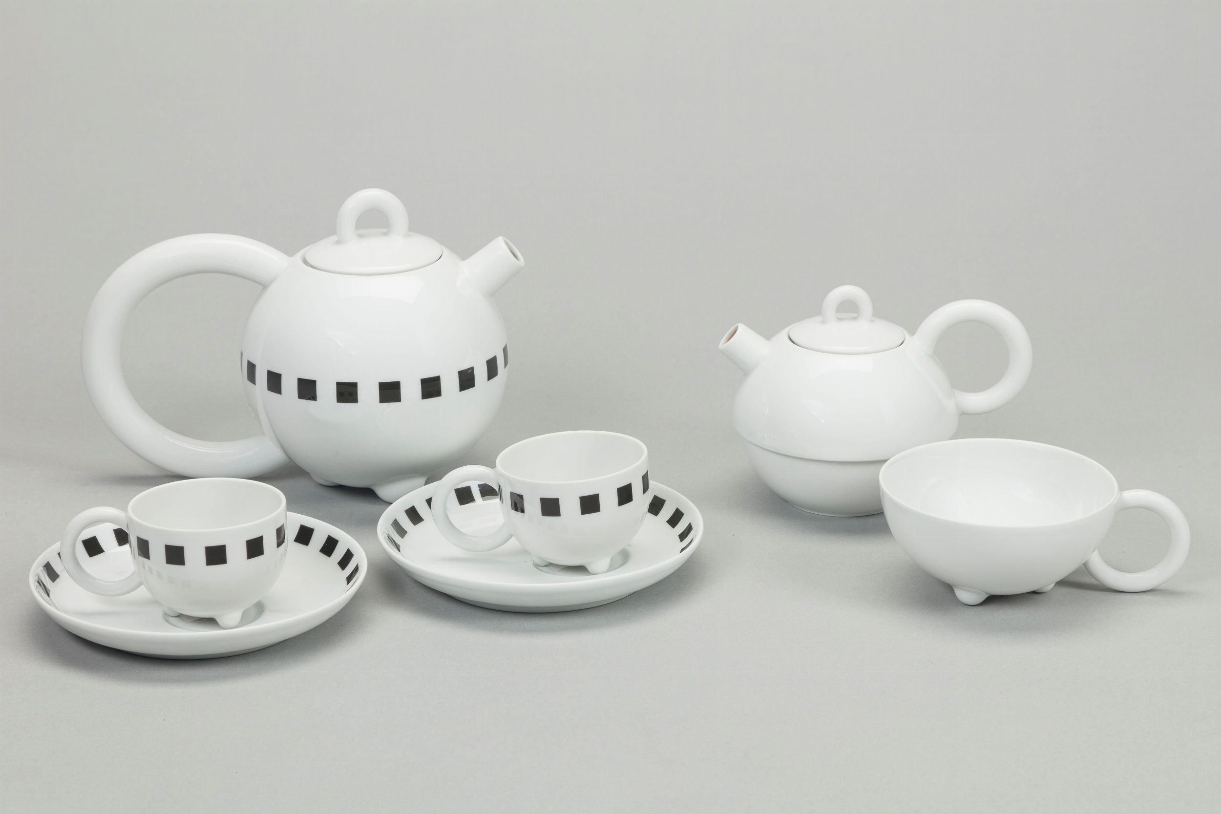 1980 ca. composto una teiera, due tazzine e due piattini, della serie Fantasia, e una teiera e una tazzina, della serie Tea for one in porcellana smaltata e serigrafata Produzione Arzberg firma serigrafata sulla base