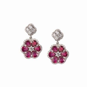 PAIO DI ORECCHINI PENDENTI CON RUBINI E PERLE