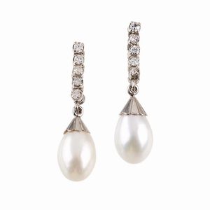 PAIO DI ORECCHINI CON PERLE E DIAMANTI