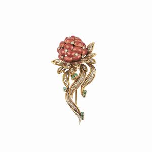 SPILLA FLOREALE CON DIAMANTI E SMERALDI