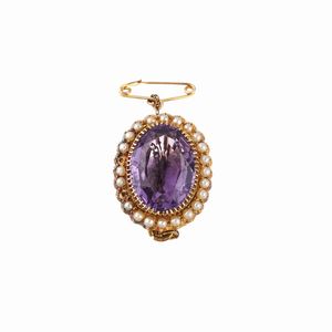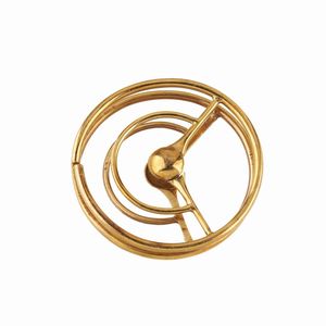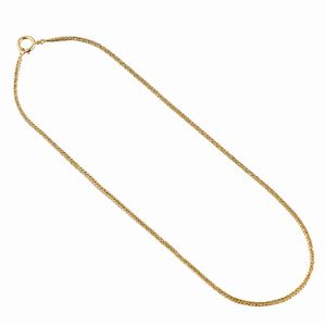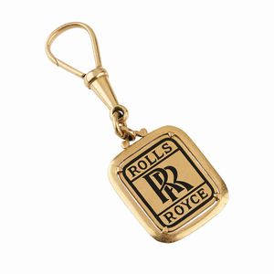 COLLANA CON ANELLO in caucciù, con ciondolo rettangolare decorato in smalto, punzoni 750 e del fabbricante, [..]