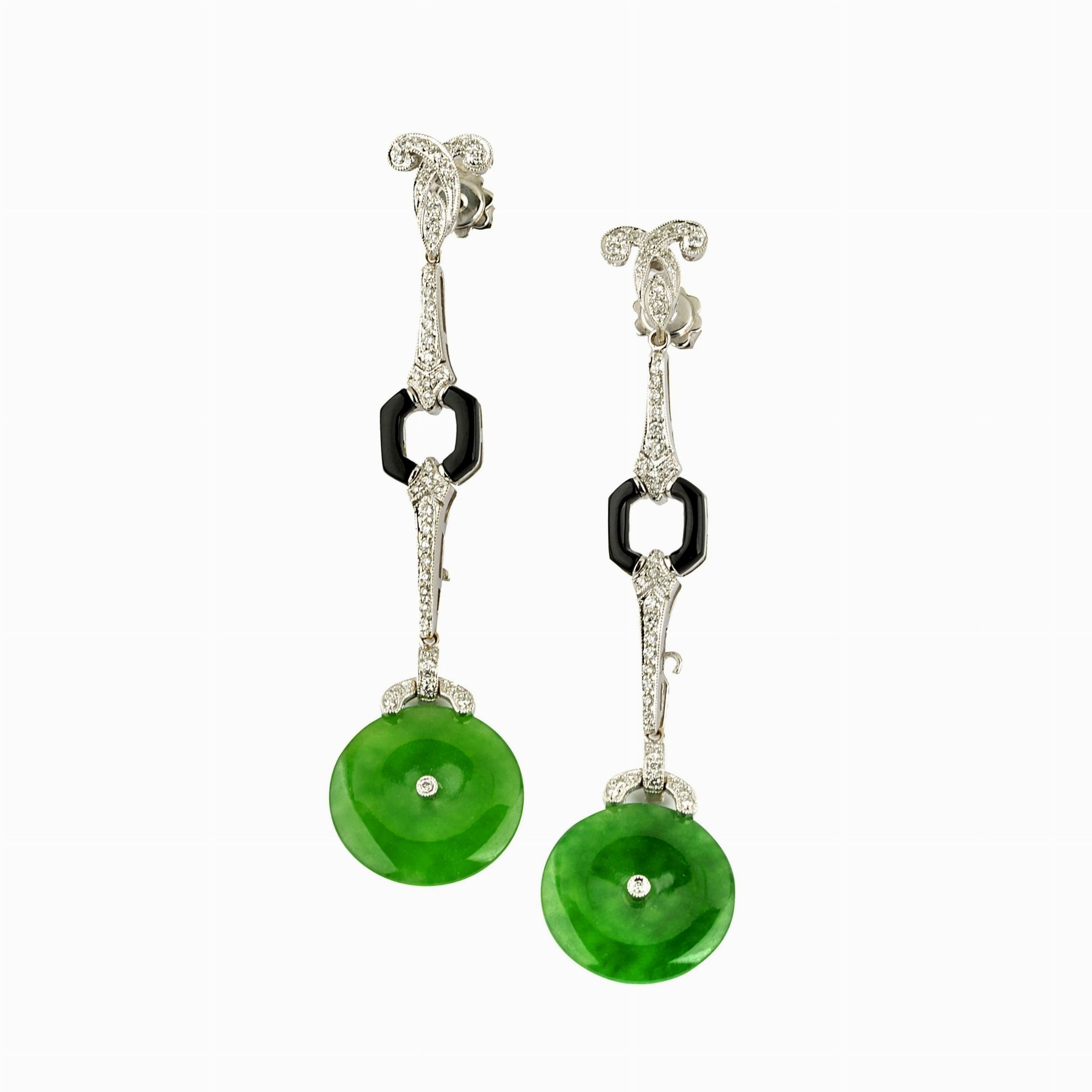 PAIO DI LUNGHI ORECCHINI PENDENTI CON GIADA ONICE E DIAMANTI