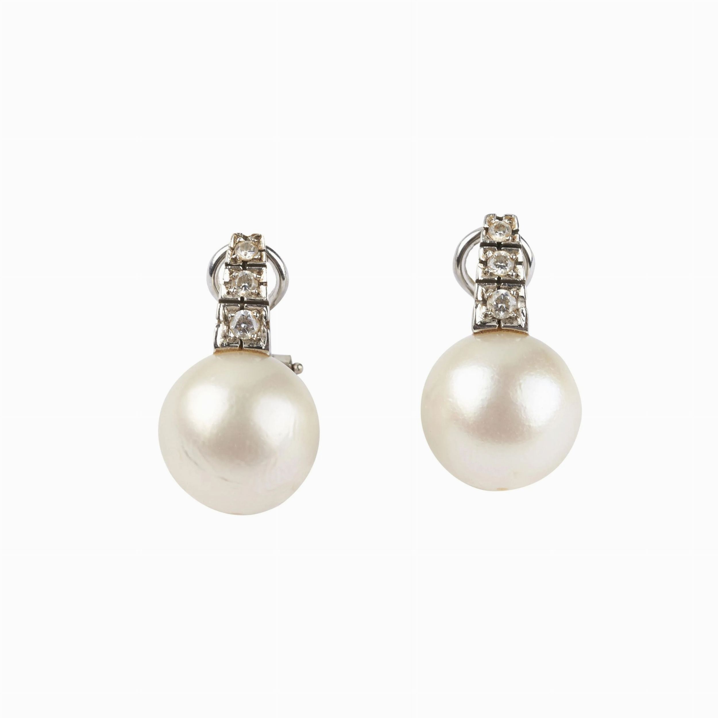 PAIO DI ORECCHINI CON PERLE E DIAMANTI