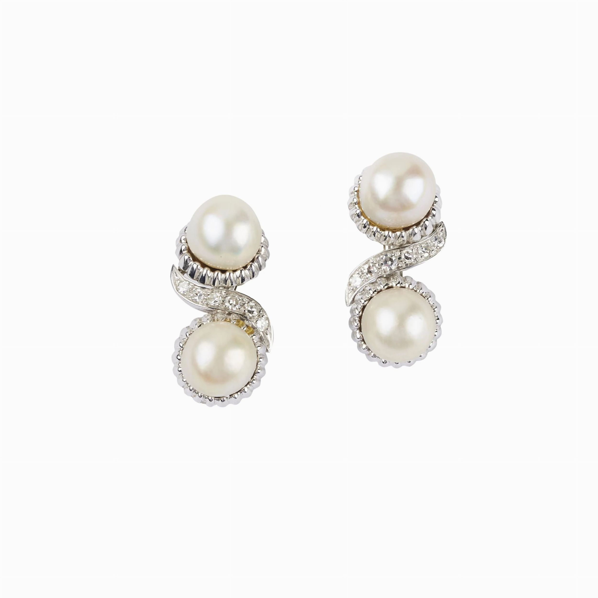 PAIO DI ORECCHINI CON PERLE E DIAMANTI