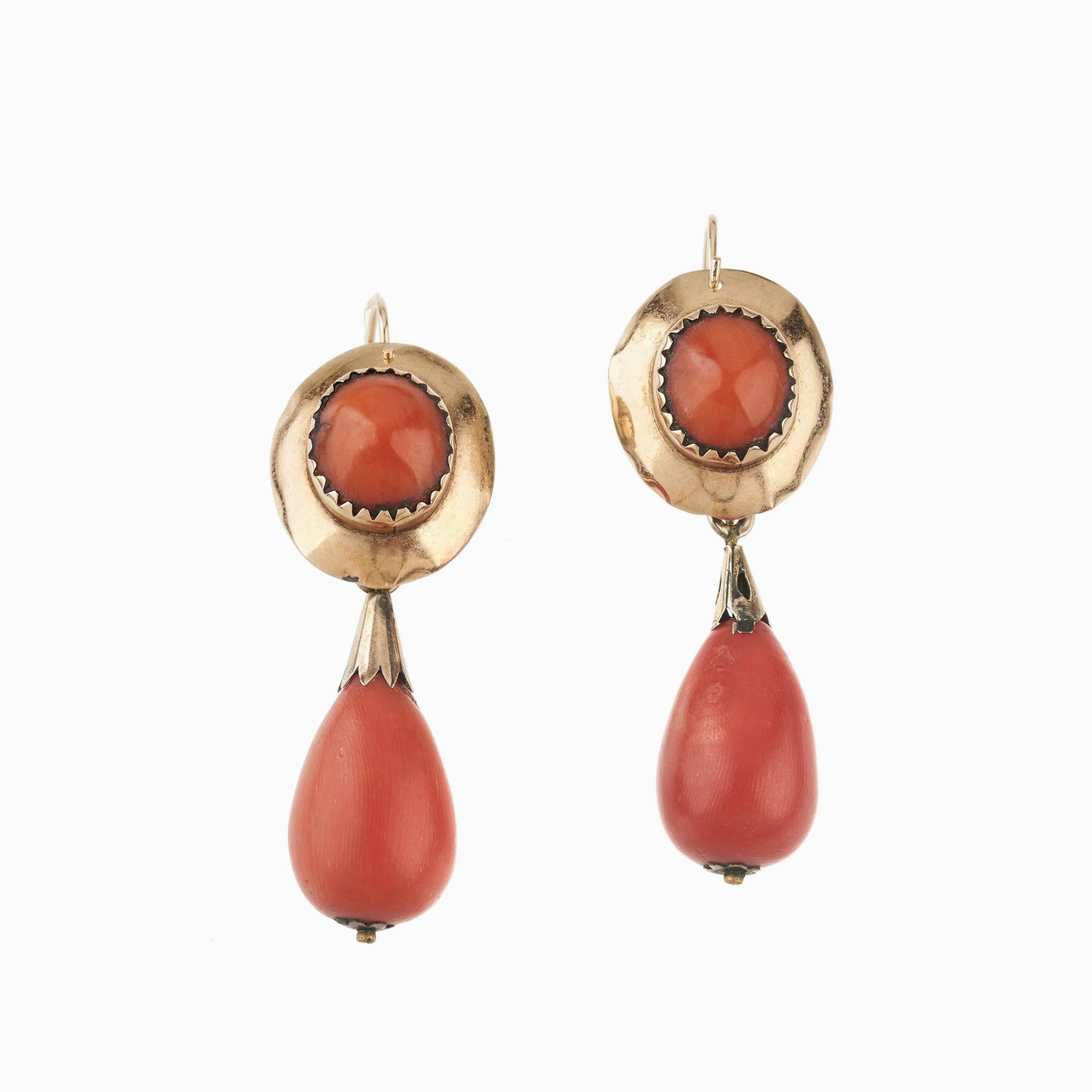 PAIO DI ORECCHINI PENDENTI CON CORALLO