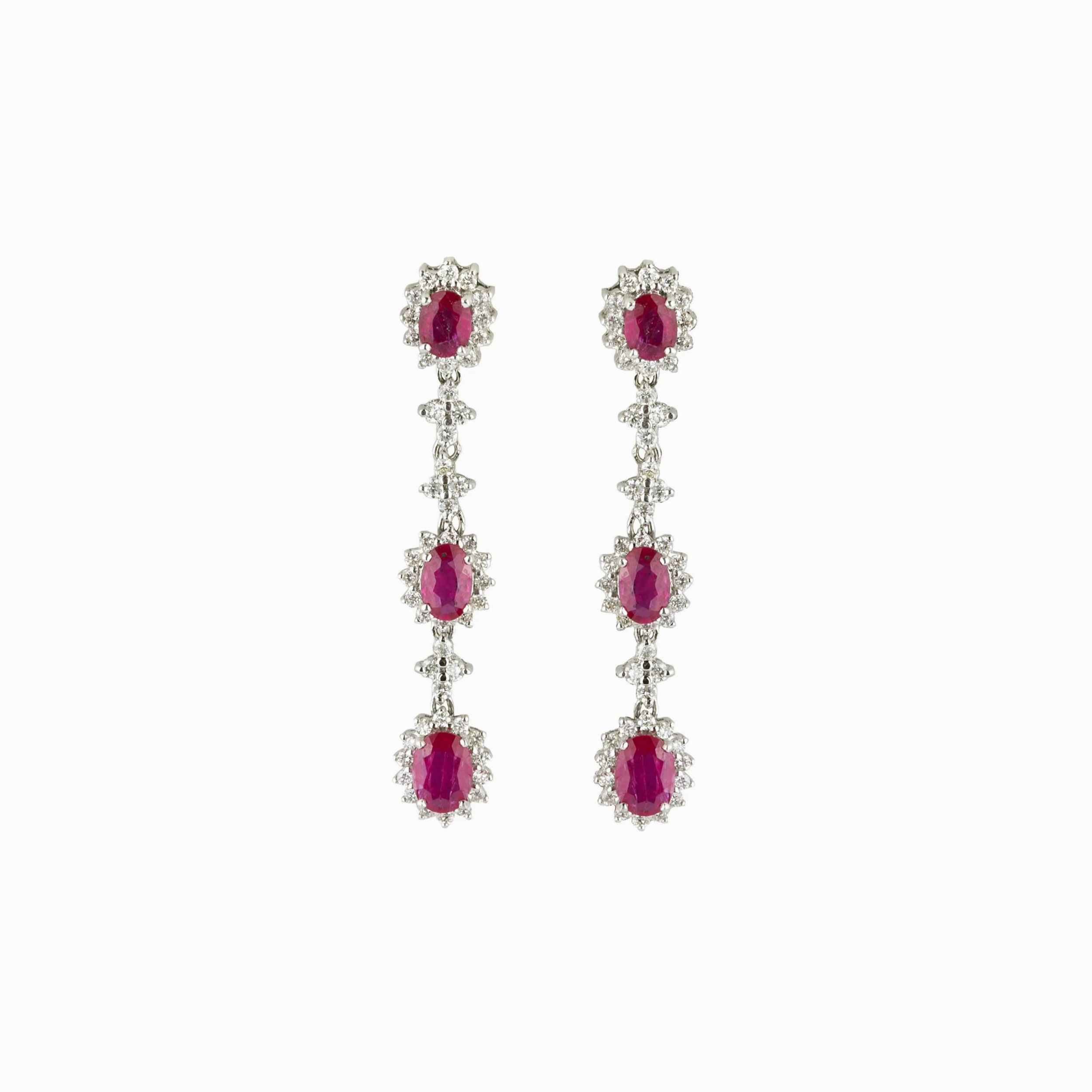PAIO DI ORECCHINI PENDENTI CON RUBINI E DIAMANTI