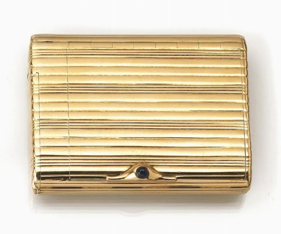 * Portasigarette, anni 1950-'55,Torrini, in oro giallo e zaffiro