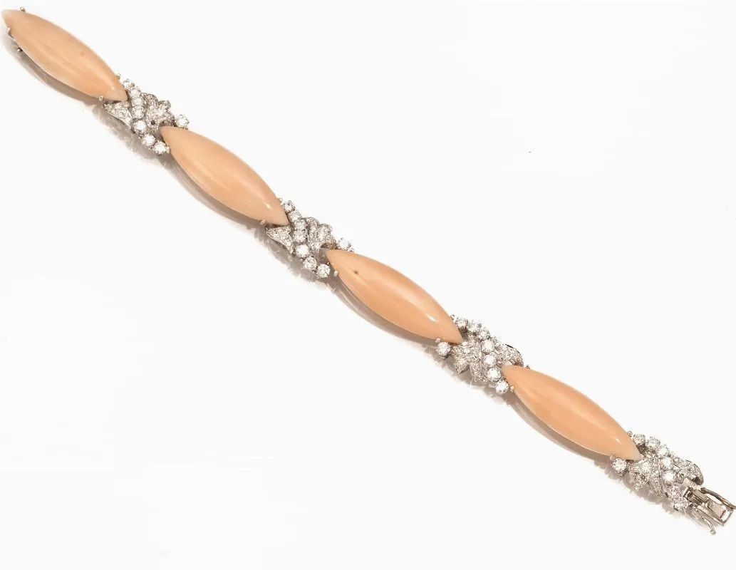Bracciale in oro bianco, corallo e diamanti  - Asta VINTAGE: BORSE E ACCESSORI DI HERMES, LOUIS VUITTON E ALTRE GRANDI MAISON - Associazione Nazionale - Case d'Asta italiane