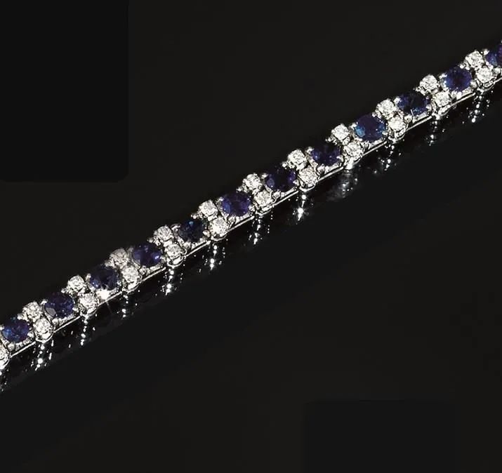 realizzato ad una fila di zaffiri rotondi alternati da coppie di brillanti
