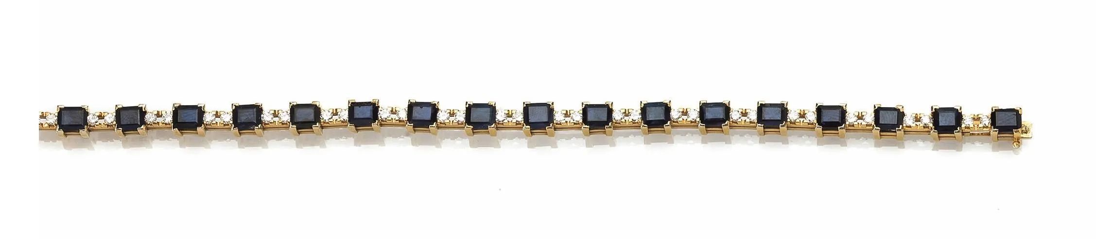 realizzato ad un fila di zaffiri rettangolari taglio a gradino intercalati da due coppie di brillanti, punzone 750, g 24