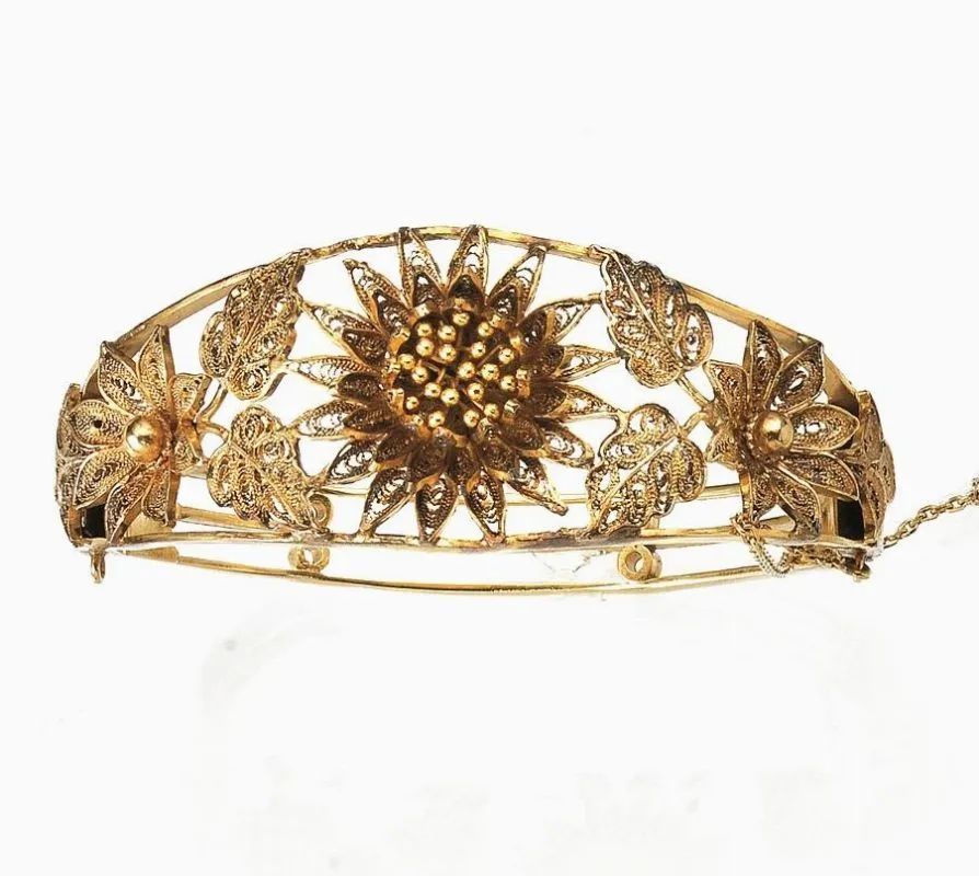 modellato a cerchio rigido lavorato a filigrana con motivi floreali, g 36