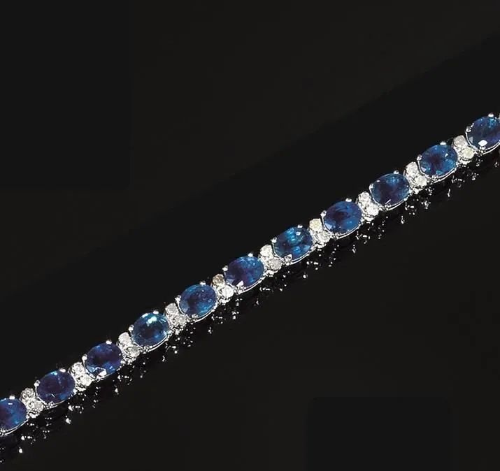 realizzato ad una fila di zaffiri ovali intercalati da coppie di brillanti, punzone 750, g 8