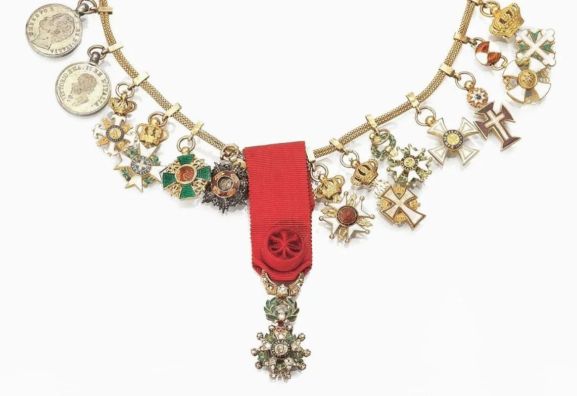 Catena in oro giallo, argento, smalti e diamanti con onorificenze ed una catena [..]