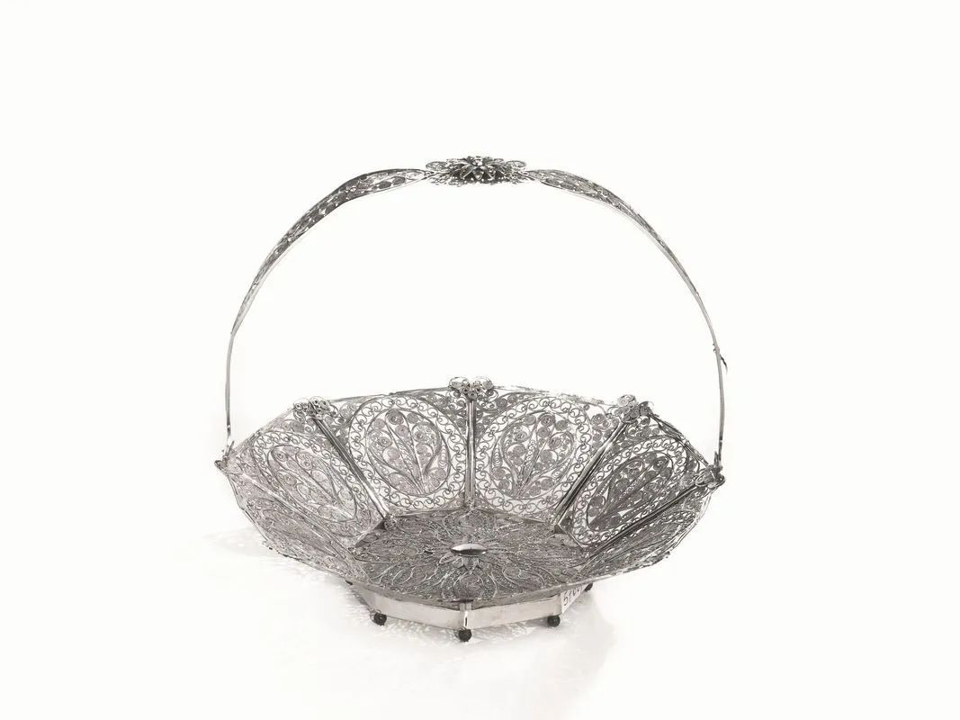in filigrana dargento, di forma ottagonale decorata da volute e palmette, g