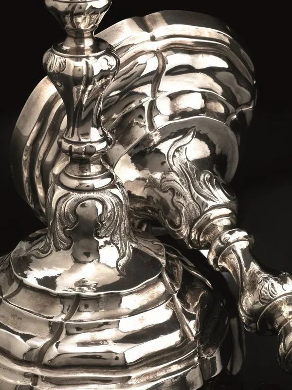 COPPIA DI CANDELIERI, MILANO, METÀ SEC. XVIII, BOTTEGA ALL’INSEGNA [..]