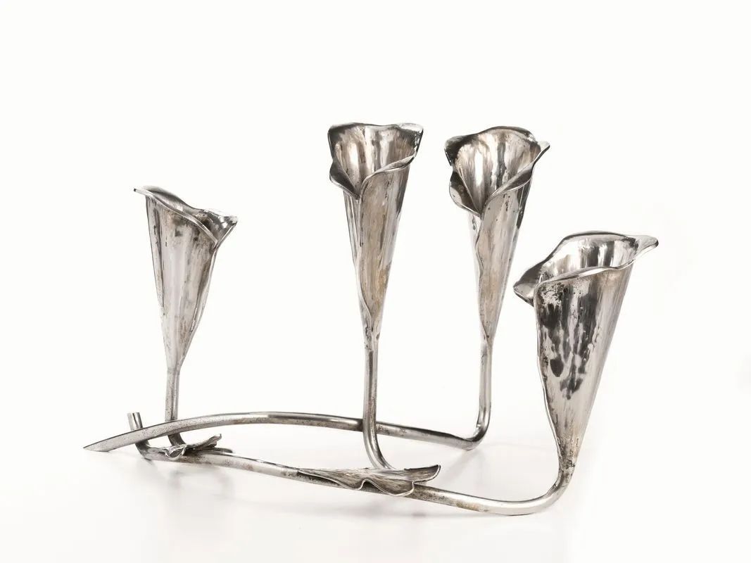in argento realisticamente modellato come quattro calle, alt. cm 29, g 1358