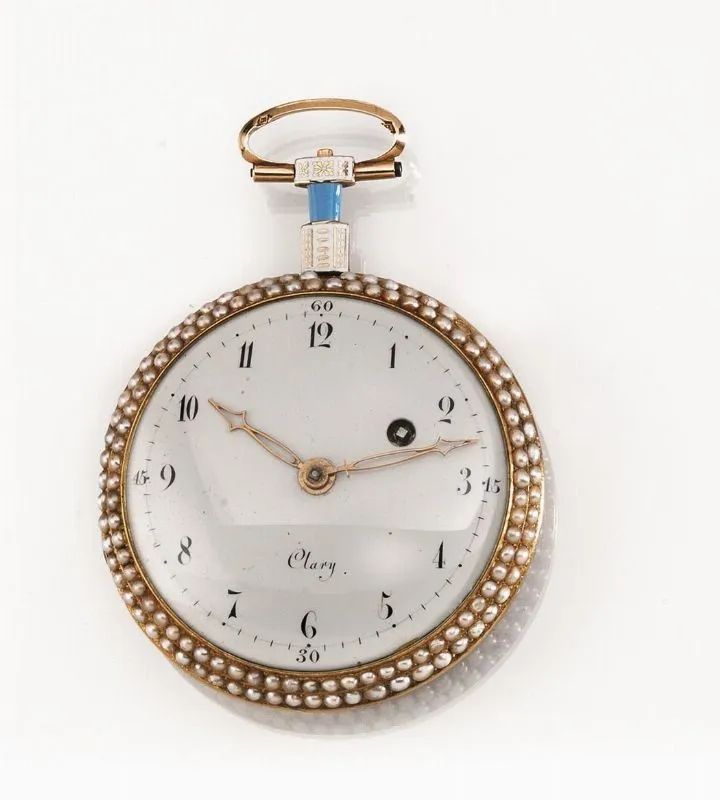 OROLOGIO DA TASCA CLARY, 1790 CIRCA, IN ORO GIALLO, MICROPERLE E SMALTI