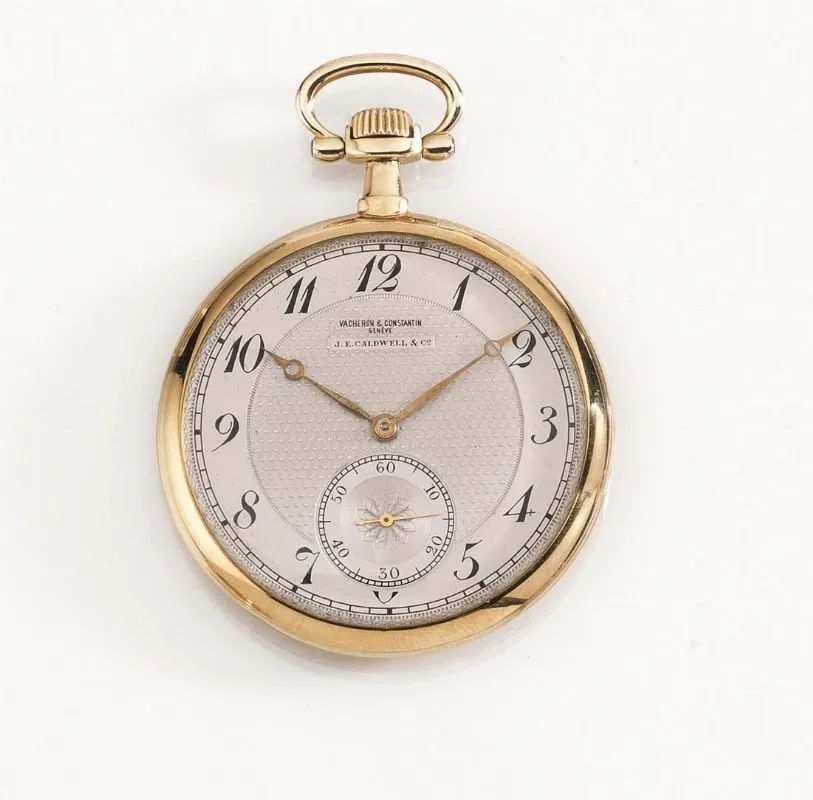 OROLOGIO DA TASCA VACHERON & CONSTANTIN GENEVE PER J.E. CALDWELL & C., MOV. N. 320'329, N. 194'667, IN ORO GIALLO 18 KT