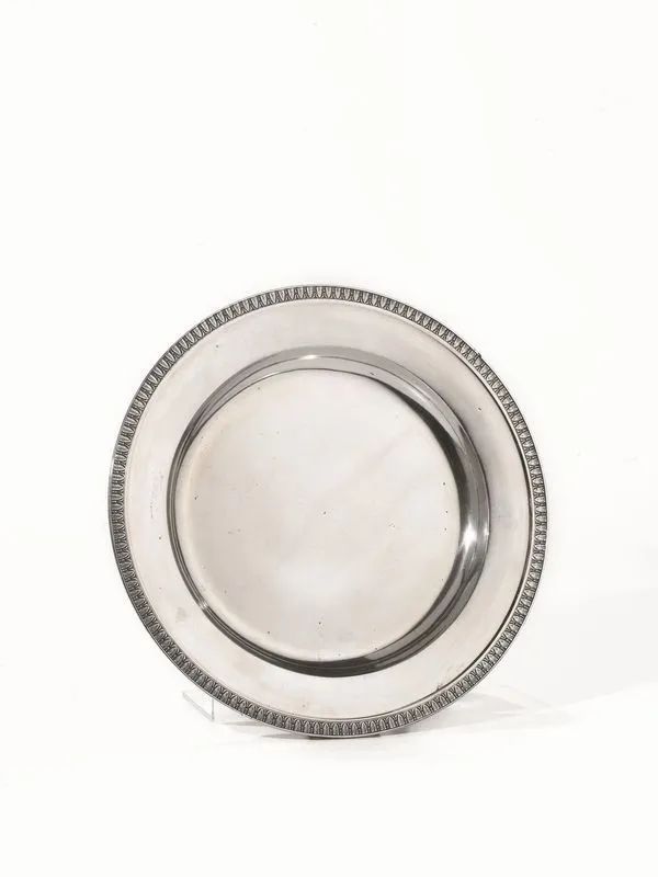 in argento, bordo cesellato a foglie lanceolate, diam. cm 31, g 1410