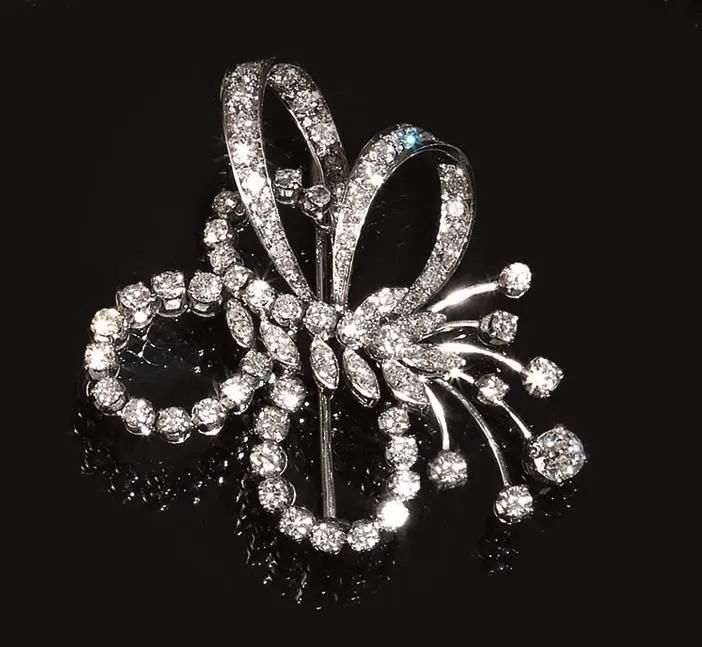 modellata a farfalla stilizzata impreziosita da brillanti da 0.02 ct a ct 0.30 circa, punzone 750, g 11