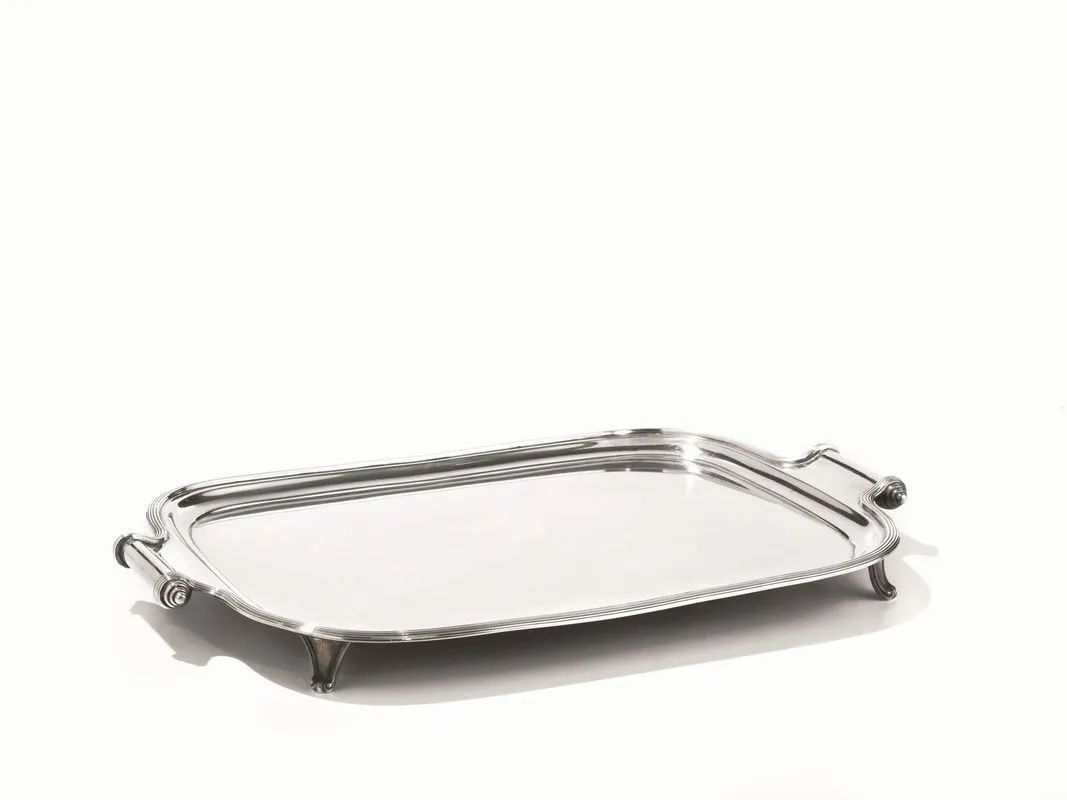 in argento, due anse a cilindro, cm 35,5x24, g 860