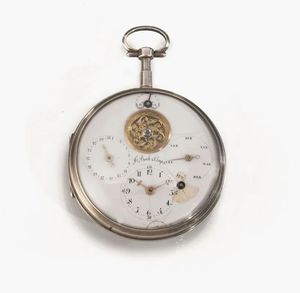 OROLOGIO DA TASCA CON RIPETIZIONE, BAPTISTE PAILLARD PARIS, 1735 CIRCA, IN ARGENTO C assa in argento traforato [..]