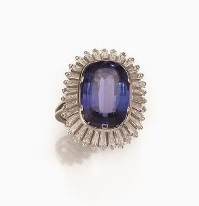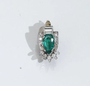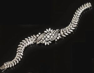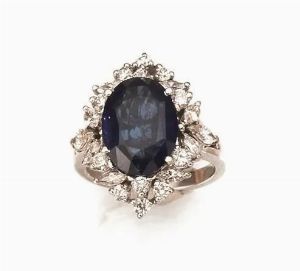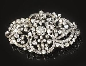 Anello in oro bianco e diamanti modellato come una girandola in brillanti, al centro diamante taglio vecchio [..]