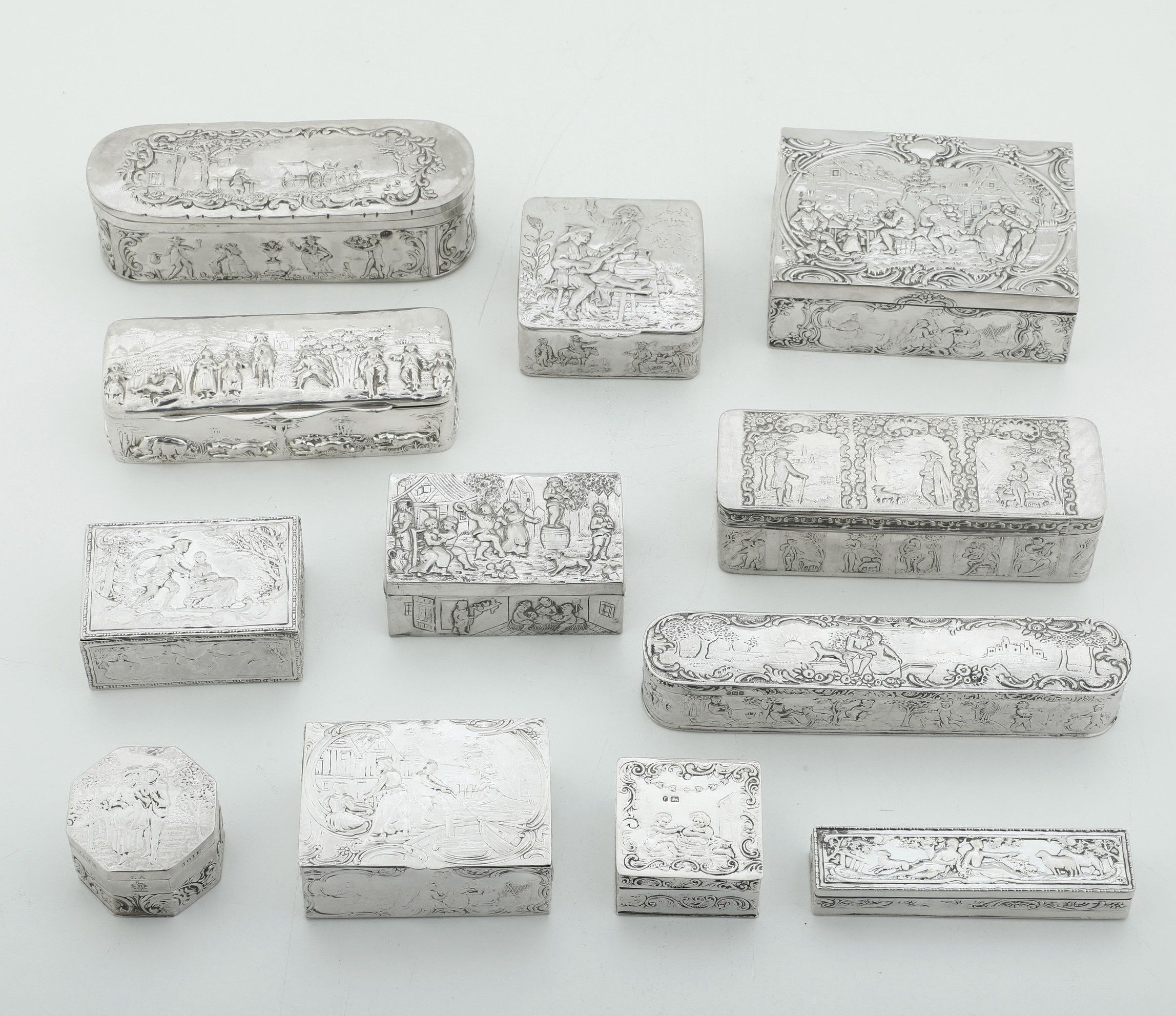 Collezione di 12 scatole in argento sbalzato. Inghilterra e Olanda XIX-XX secolo
