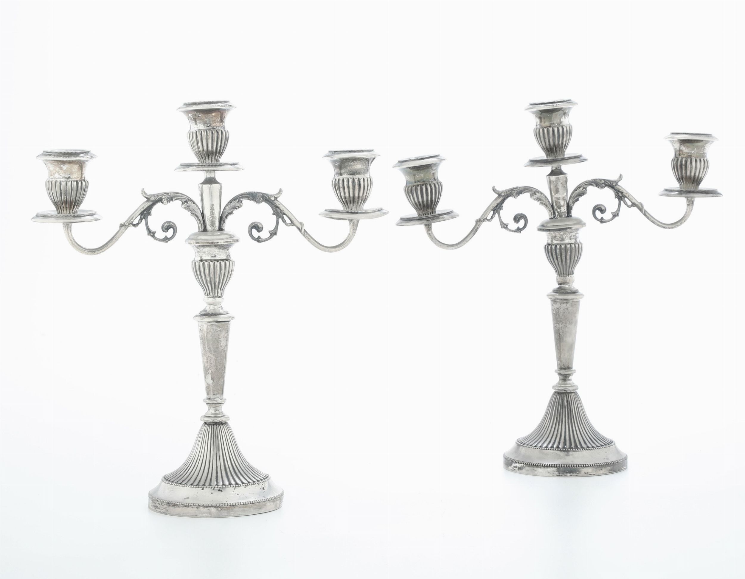 Coppia candelabri. Argenteria italiana del XX secolo, bollo dell'argentiere cons [..]