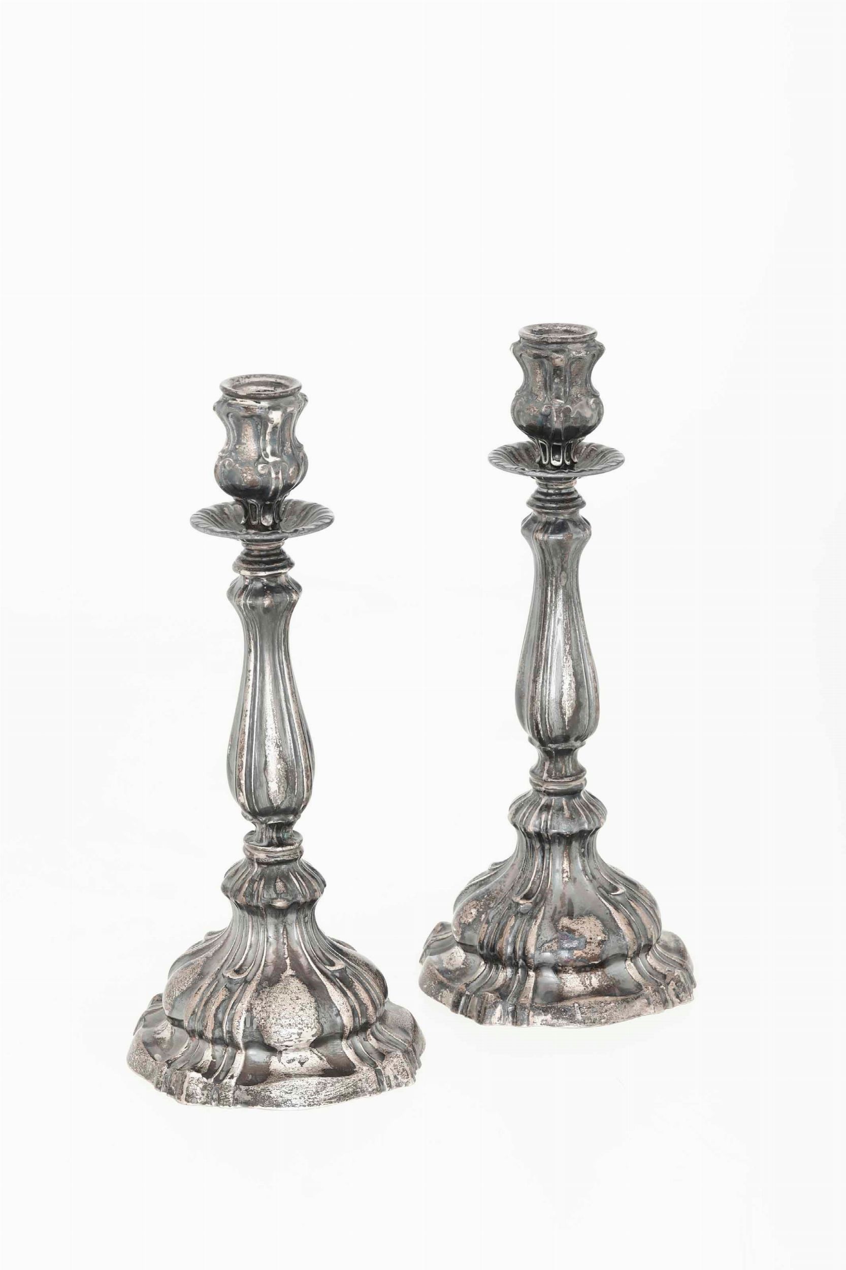 Coppia di candelieri. Argenteria italiana del XX secolo. Argentiere Castaudi & Gautero, [..]