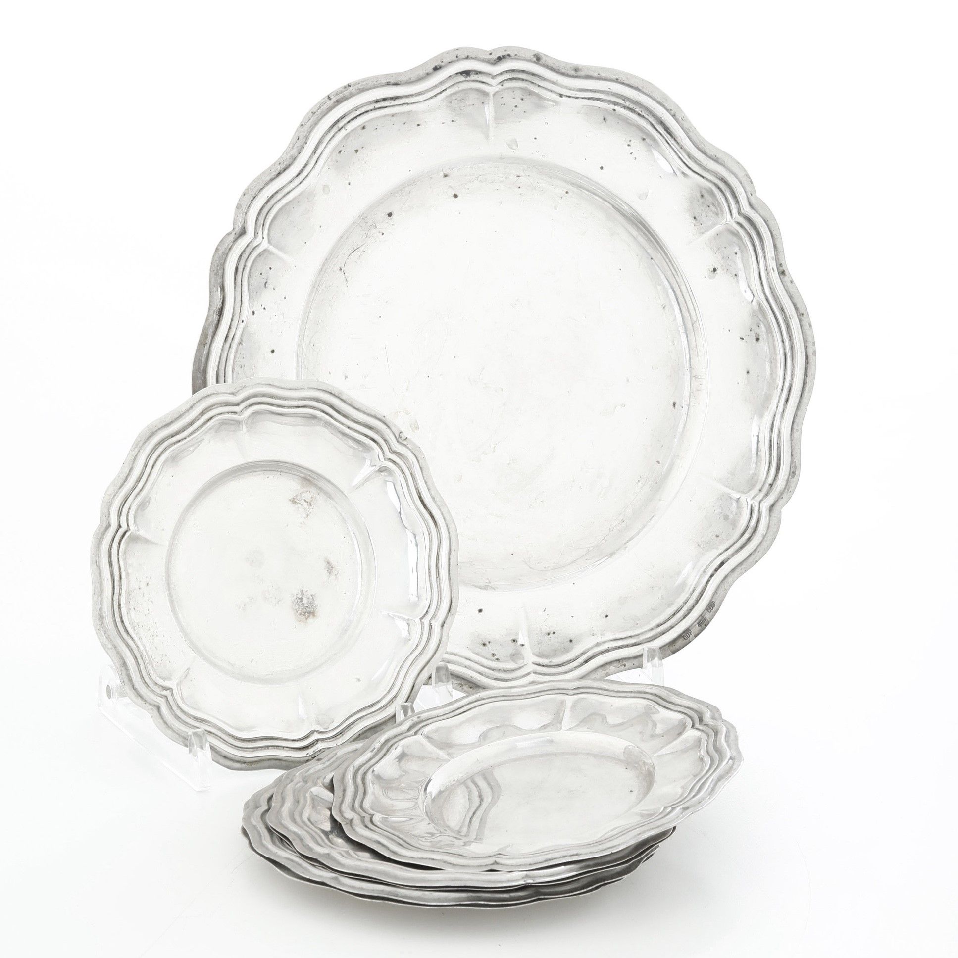 Lotto composto da sei sottobicchieri e piatto. Argenteria milanese del XX secolo, [..]