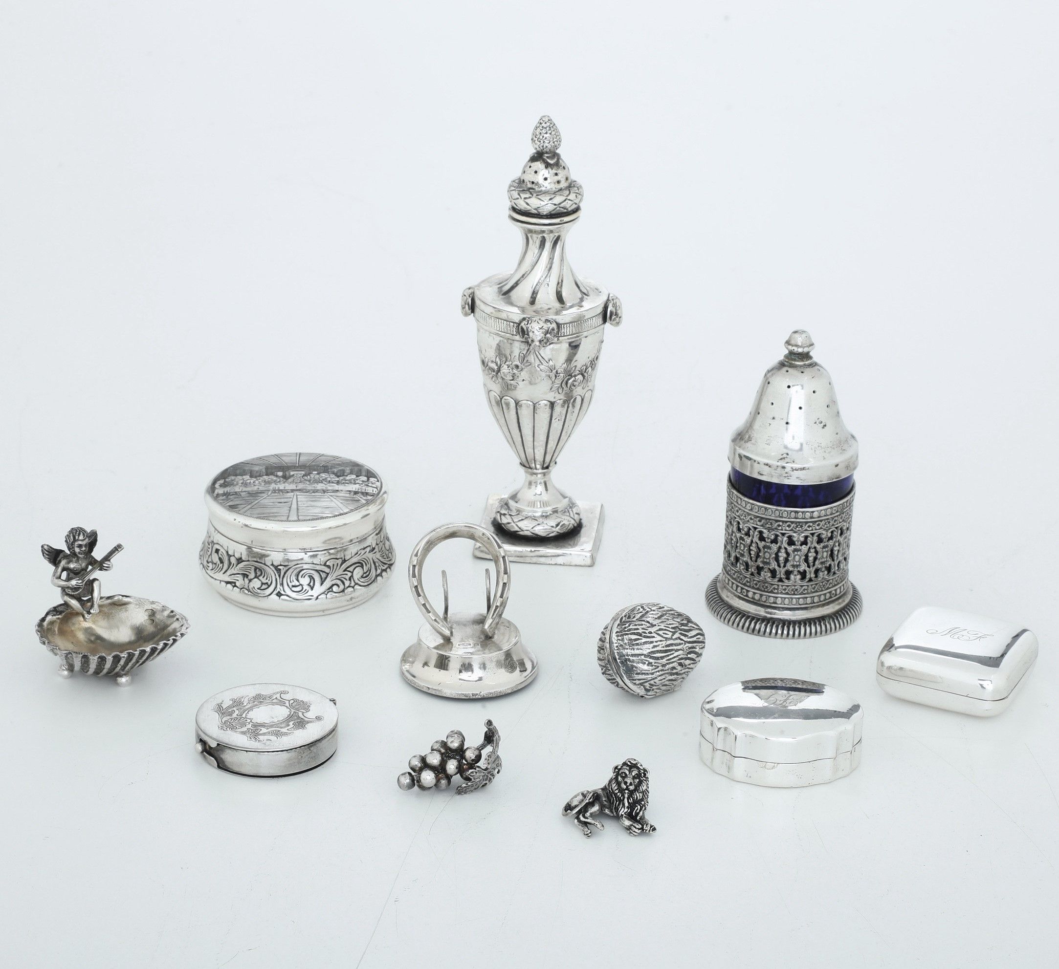 Lotto composto di 2 vasetti, 3 scatoline, una lente, un porta biglietti da visita, [..]