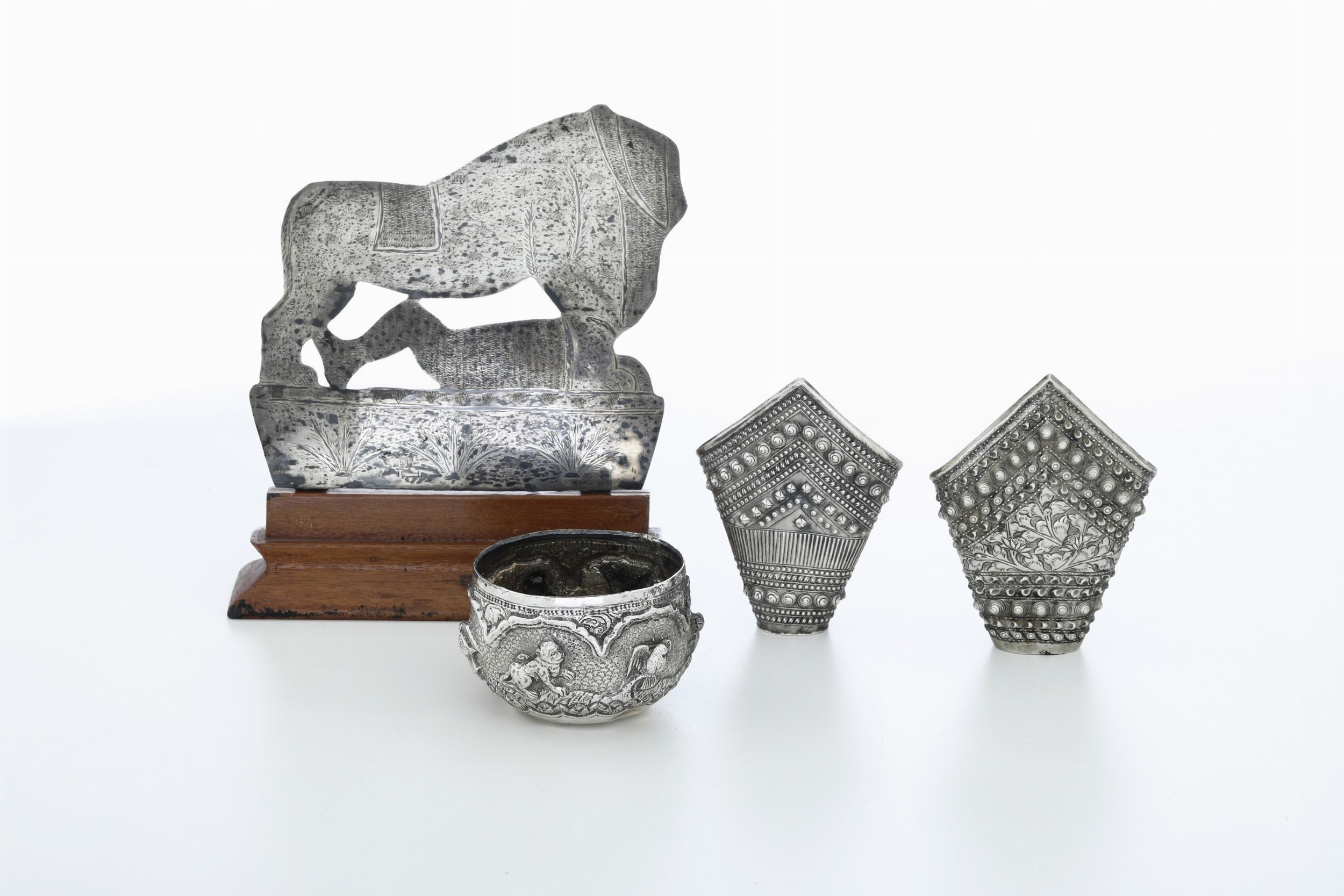 Lotto comprendente raffigurazione a soggetto zoomorfo, due coppette ed una ciotola. [..]