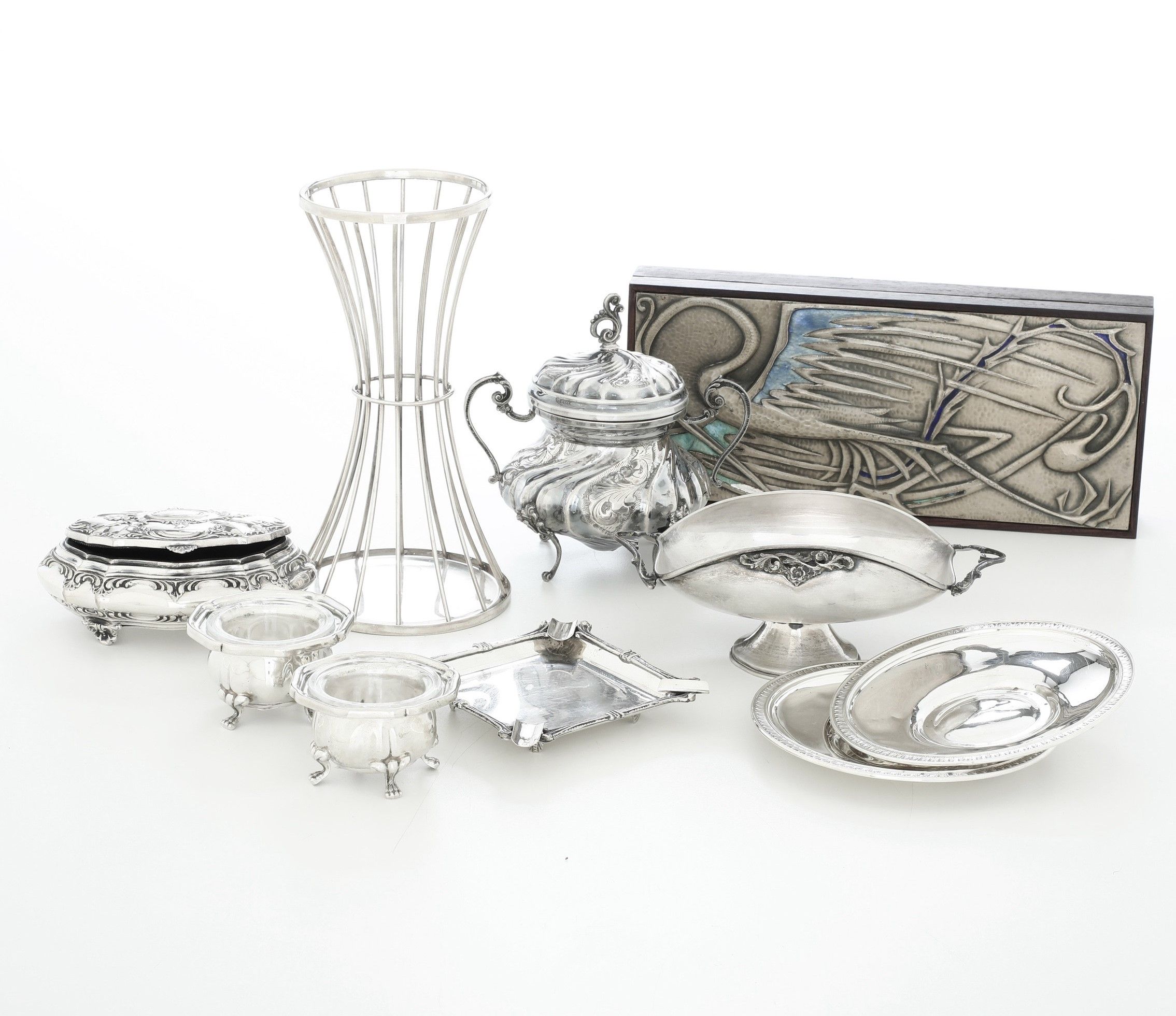 Lotto di oggetti in argento, varie argenterie italiane del XX secolo