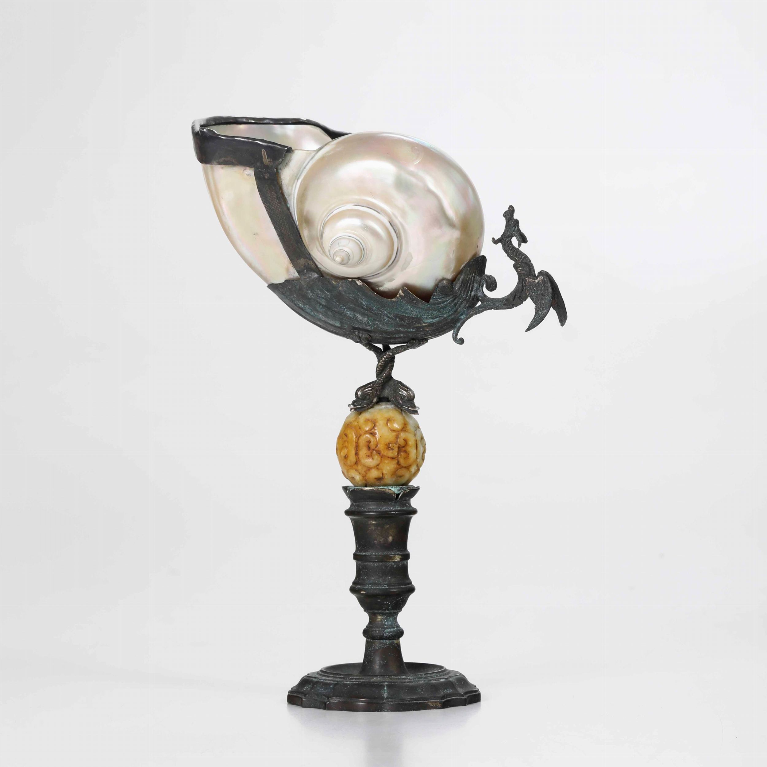 Nautilus in argento, madreperla e giada
