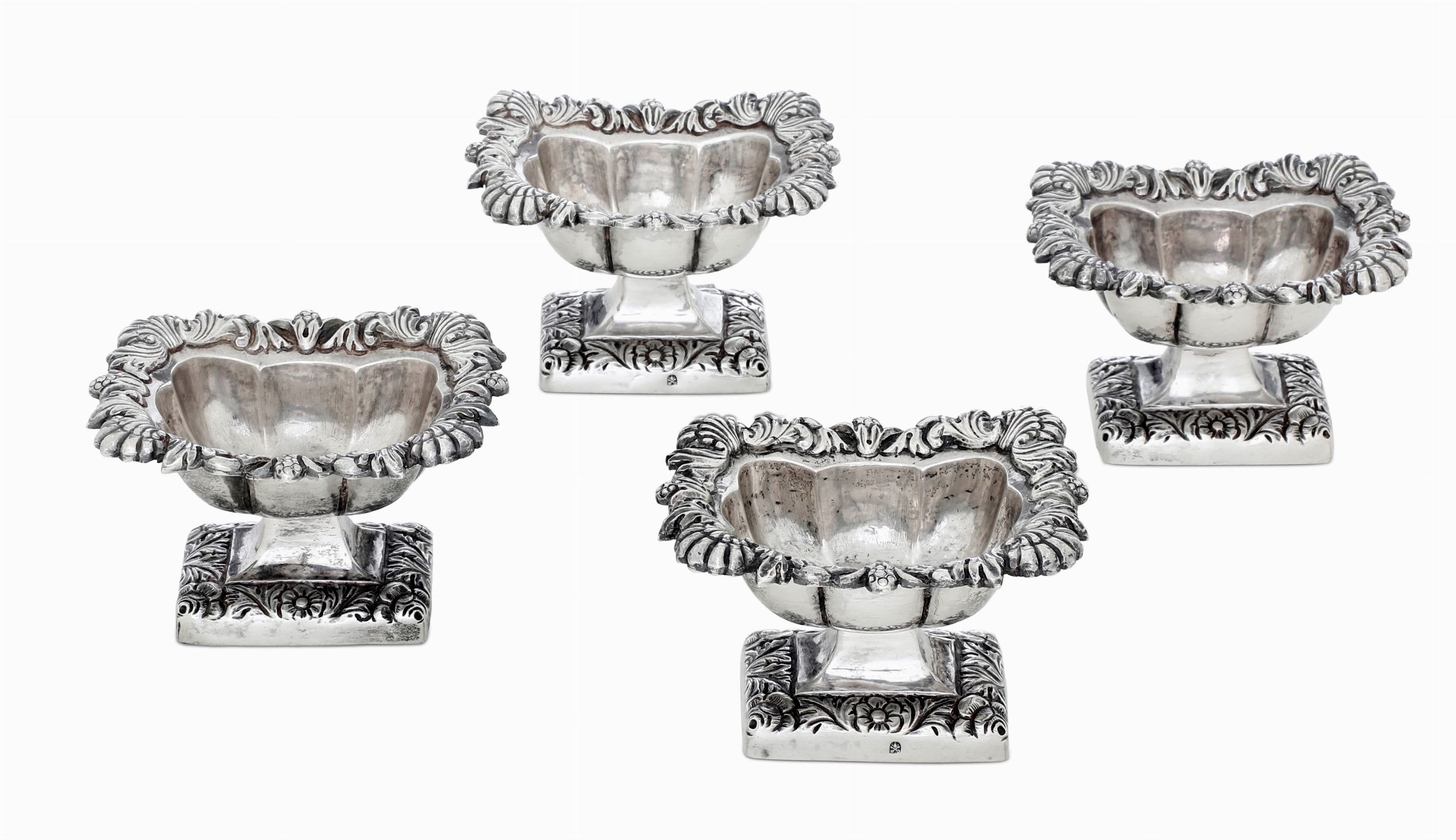 Quattro saliere. Punzoni Stato Pontificio non pertinenti. Italia XIX-XX secolo