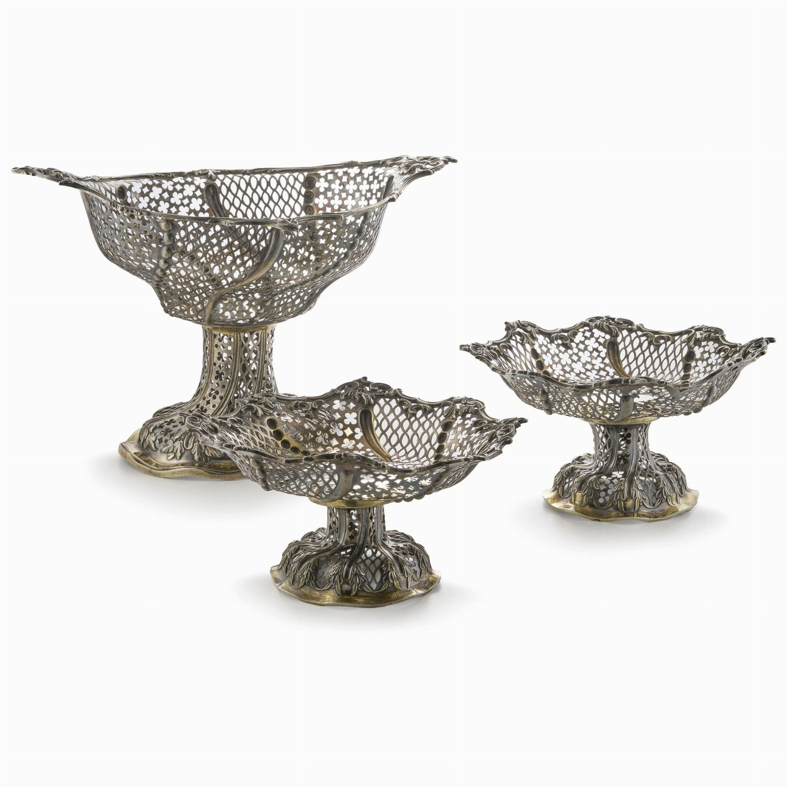 TRE ALZATE CENTROTAVOLA, LONDRA 1862, ARGENTIERE GEORGE FOX