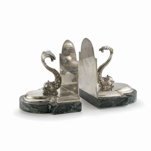 COPPIA DI FERMA LIBRI, MILANO, SECOLO XX, ARGENTIERE CARLO VALLÈ