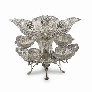 EPERGNE, CITTÀ DI SHEFFIELD 1901-1904, ARGENTIERI JAMES DIXON & SON in argento quattro altri piedini [..]