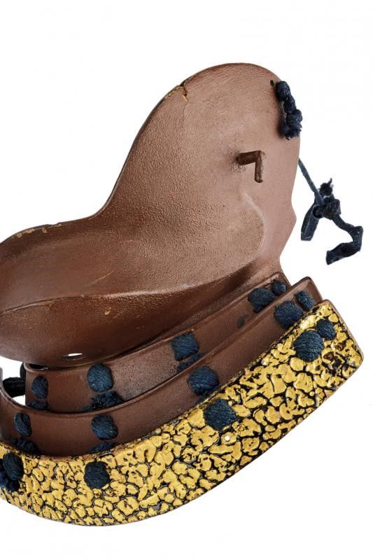 Periodo Edo (1603-1867) Del tipo tsubame, laccato nero all'interno. Yodare-kake con tre lame in ferro, le prime due en suite con la superficie dell'hanbo, l'ultima decorata in oro del tipo tatakinuri. Primo periodo Edo.