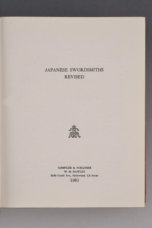 1981 'Japanese Swordsmiths Revised'; Compiler & Publisher W. M. Hawley, Hollywood, 1981; 1046 pagine. Copertina rigida con titolo in oro.