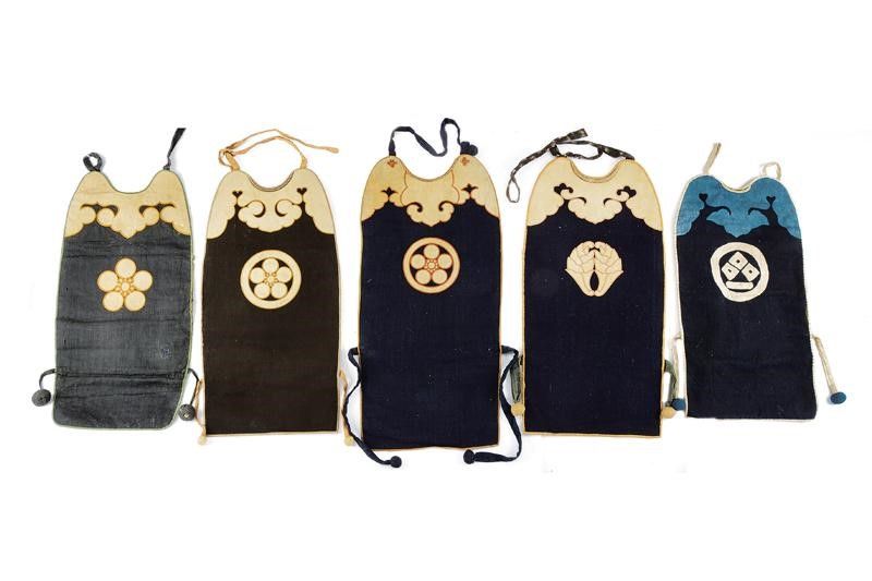 Periodo Edo (1603-1867) In varie tonalità di tessuto blu, completi di mon, tutti differenti, e stringhe. Tardo periodo Edo.