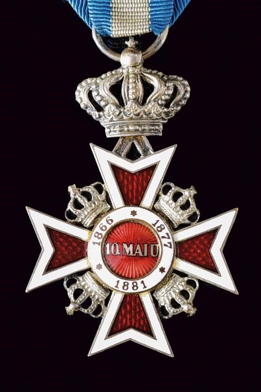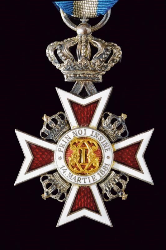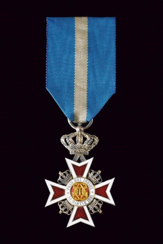 1932 - 1944 Croce da cavaliere, in argento dorato, con monogramma in oro, sotto corona e con nastro originale.