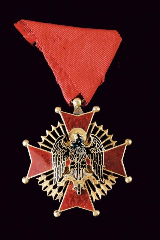 Terzo quarto del XX Secolo In argento dorato e smaltato, con resti del nastro.