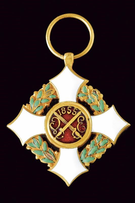 Secondo quarto del XX Secolo Croce da cavaliere. In argento dorato. Smalti quasi perfetti.