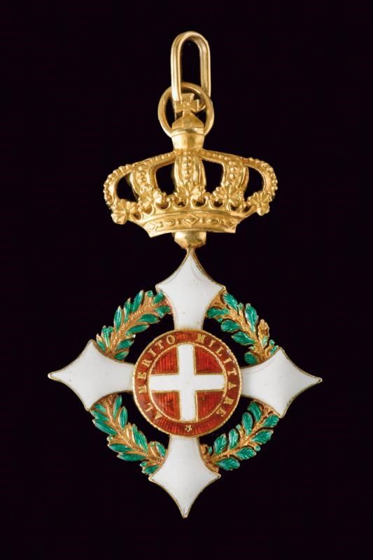Secondo quarto del XX Secolo Croce da ufficiale, in argento dorato e smaltato. Sotto corona.