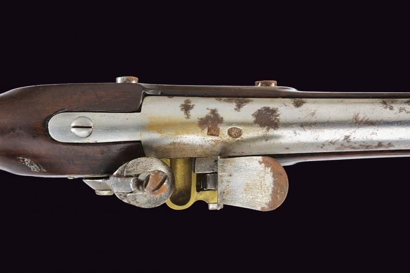 lunghezza 42.5 cm. Canna liscia, tonda, con base quadra munita di vari punzoni e date '1833' e '848', batteria con firma della manifattura imperiale di Brescia. Casa intera in legno (crepa nel calcio) con fornimenti in ottone (punzoni). Zone con danni da ruggine.