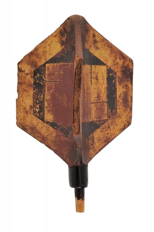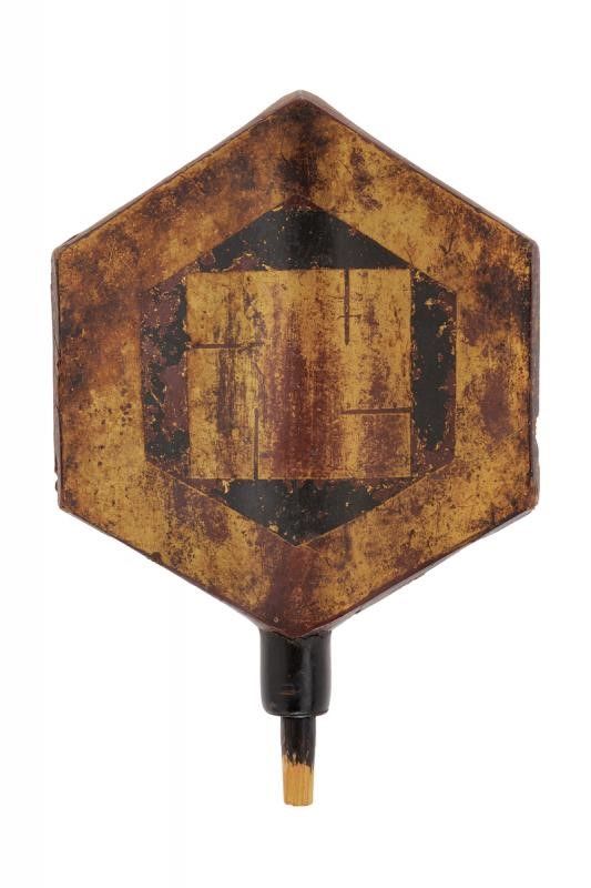 Periodo Edo (1603-1867) Realizzato in legno laccato e dorato. A tre facce, ognuna con 'Hitoe-kikkou-ni-manji-mon', il bordo con mancanze.