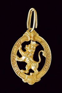 dimensioni 5 x 7.5 cm. 1932 - 1947 In argento dorato e smaltato, con spade; sotto corona, l'anello marcato 'SILBER [..]