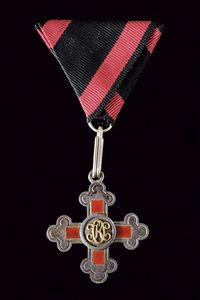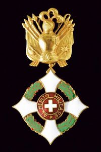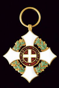 dimensioni 3.8 x 5.1 cm. 1932 - 1944 Croce da cavaliere, in argento dorato, con monogramma in oro, sotto corona [..]